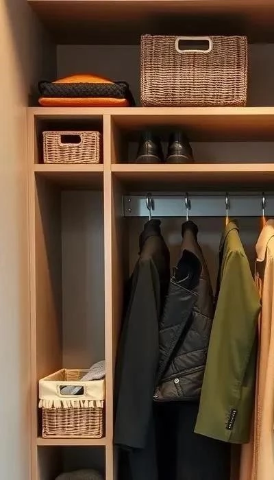 Для создания функционального и эстетичного уголка для хранения верхней одежды в прихожей, обеспечивающего порядок в прихожей и максимальную функциональность хранения, учесть: