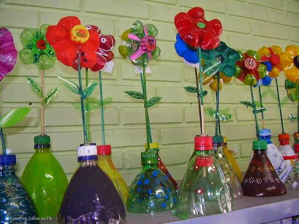 Вазы можно сделать из пластиковых бутылок: возьмите стандартные или большие пятилитровые. Подойдут любые размер и форма. Для самого простого варианта вам потребуется только бутылочка, ножницы и канцелярский нож: