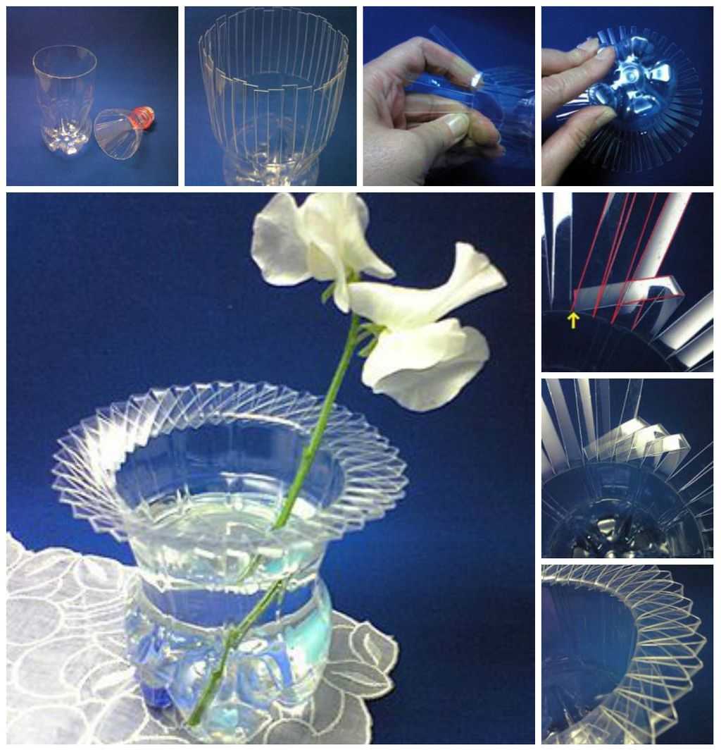 Необычной и оригинальной является ажурная ваза. Для такой поделки из пластиковых бутылок потребуется: