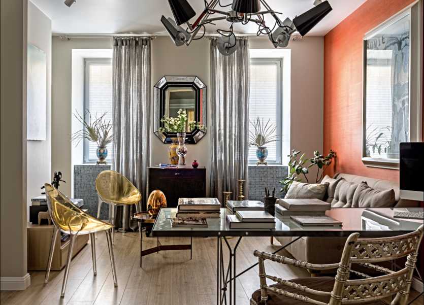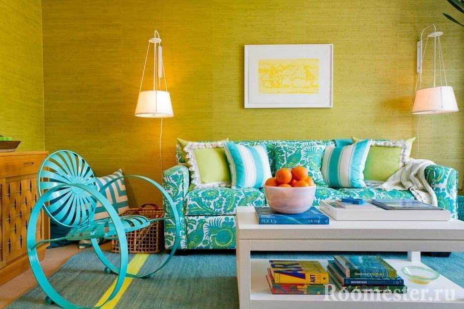 - Для мягкой мебели есть свои исключения, можно миксовать с дизайном, допустим, простой диван лофт плюс кресла ярких оттенков, вроде EggChair или Pola.