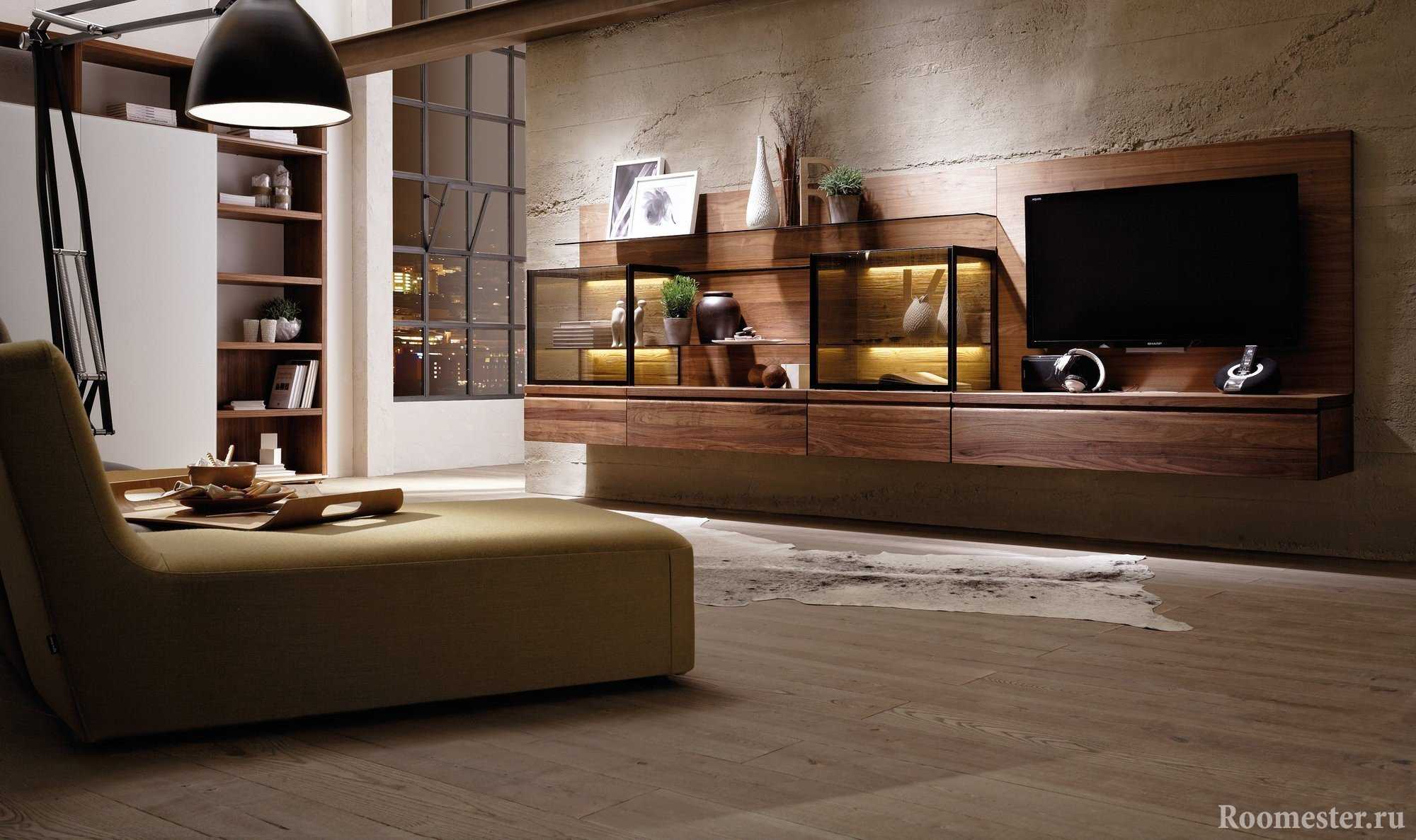 - Стенки для гостиной уже содержат самое выгодное место для размещения телевизора. Такой вариант удобен, эргономичен.