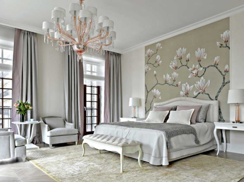 Оформление окон должно соответствовать общей стилистике интерьера. Шторы и тюль подбираются светлых оттенков. Они должны быть одинаковыми на двух оконных проёмах.