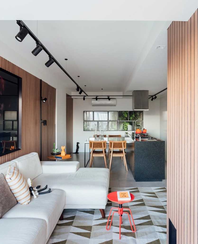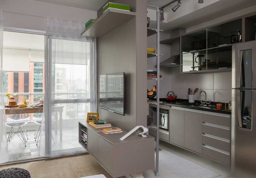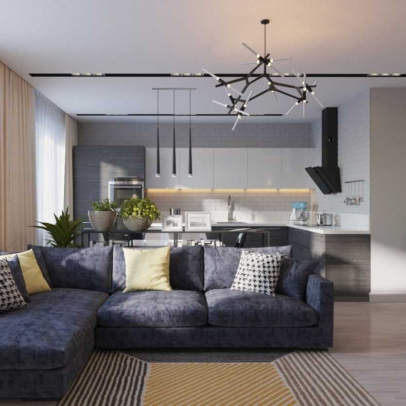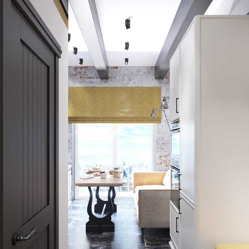 Ну а если вы решили большую часть помещения отвести под спальню-гостиную, за перегородками можно спрятать, напротив, кухонный гарнитур. Впрочем, физическим разграничением в таком случае может выступить и кухонный остров или барная стойка: и эффект зонирования будет очевиден, и объем сохранится.