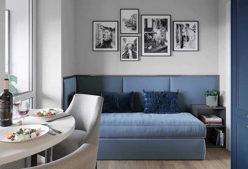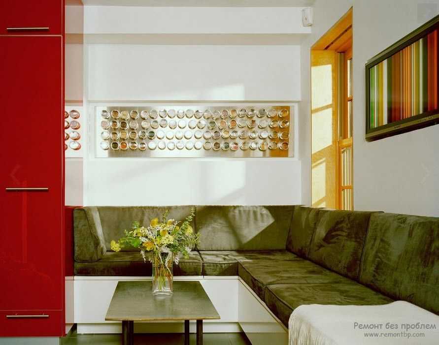 В небольшом помещении лучше всего для размещения мебели использовать угол. Так удастся хорошо сэкономить пространство. Любой угловой диванчик в сочетании со столом служит комфортной обеденной зоной. И обустроить его в качестве спального места не составляет никакой сложности.