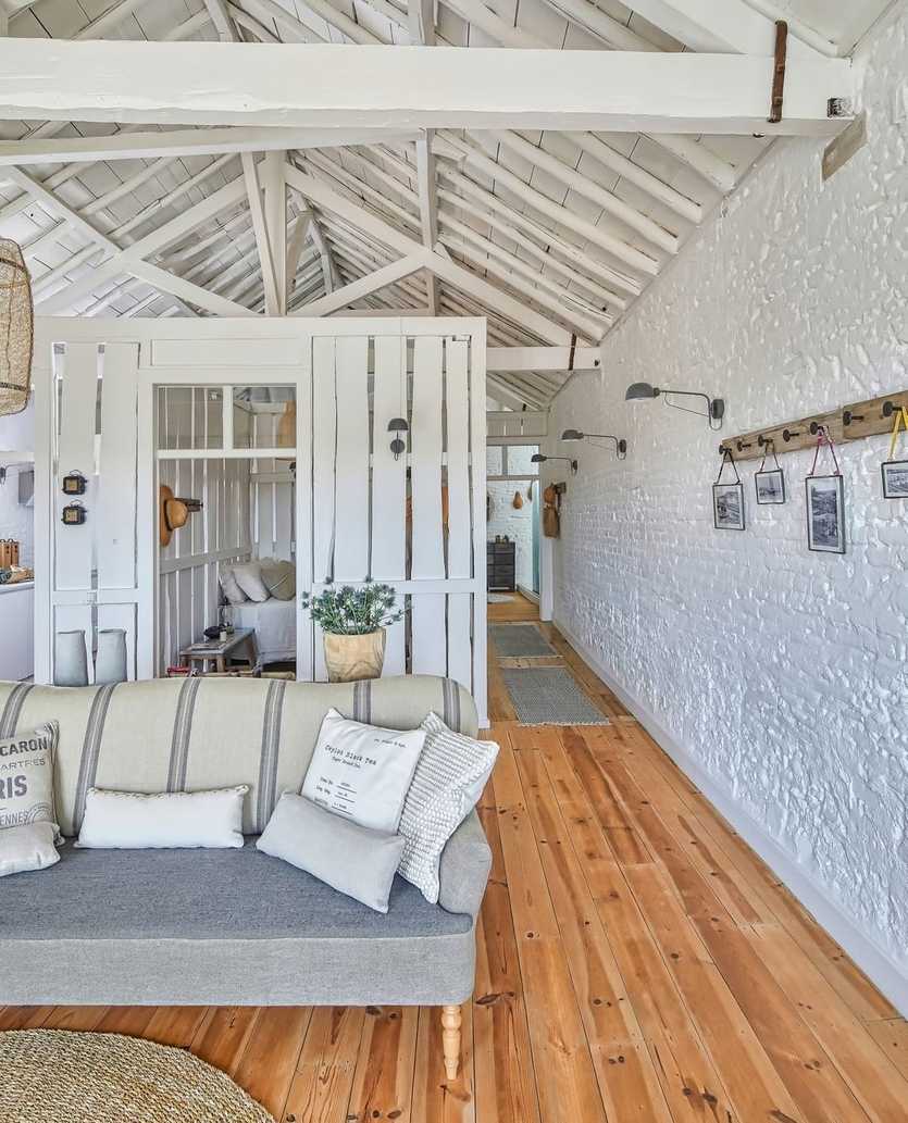 На фото нестандартная модель диван-лавка. Помимо его глубоких шкафчиков внутри, можно спинку трансформировать в каркас и положить сверху матрас.