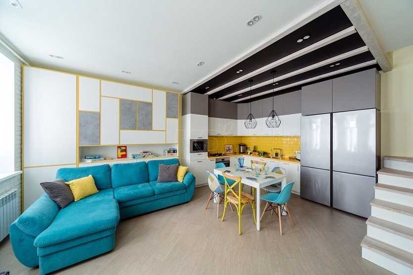 Самый простой и рабочий прием оформить кухню со спальным местом — физическое зонирование.