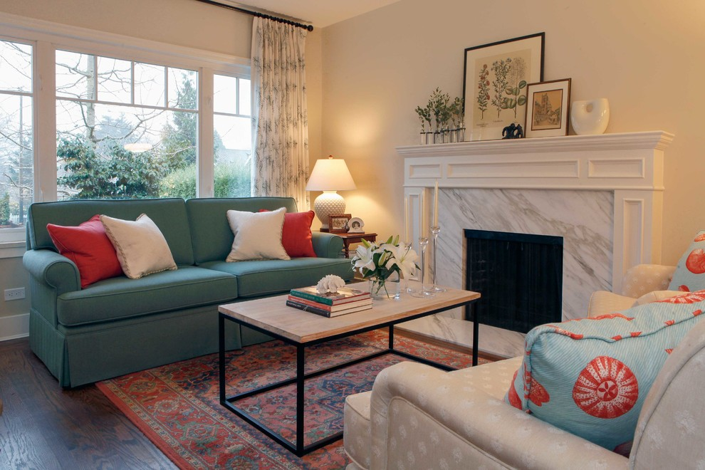 Для начала приобретите пару подушек в этом цвете либо шторы, или не большой коврик. И вы не успеете оглянуться, как он заполнит каждый уголок вашей гостиной. В итоге поймете, что это было верным решением.