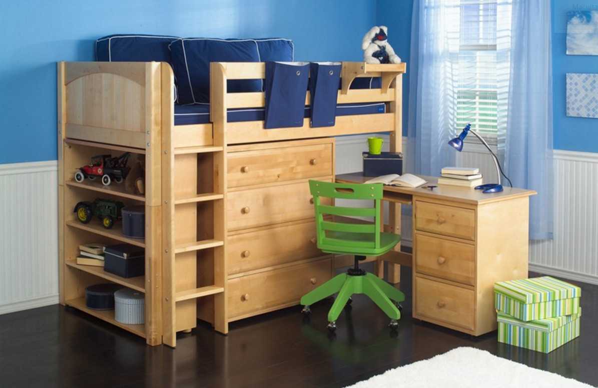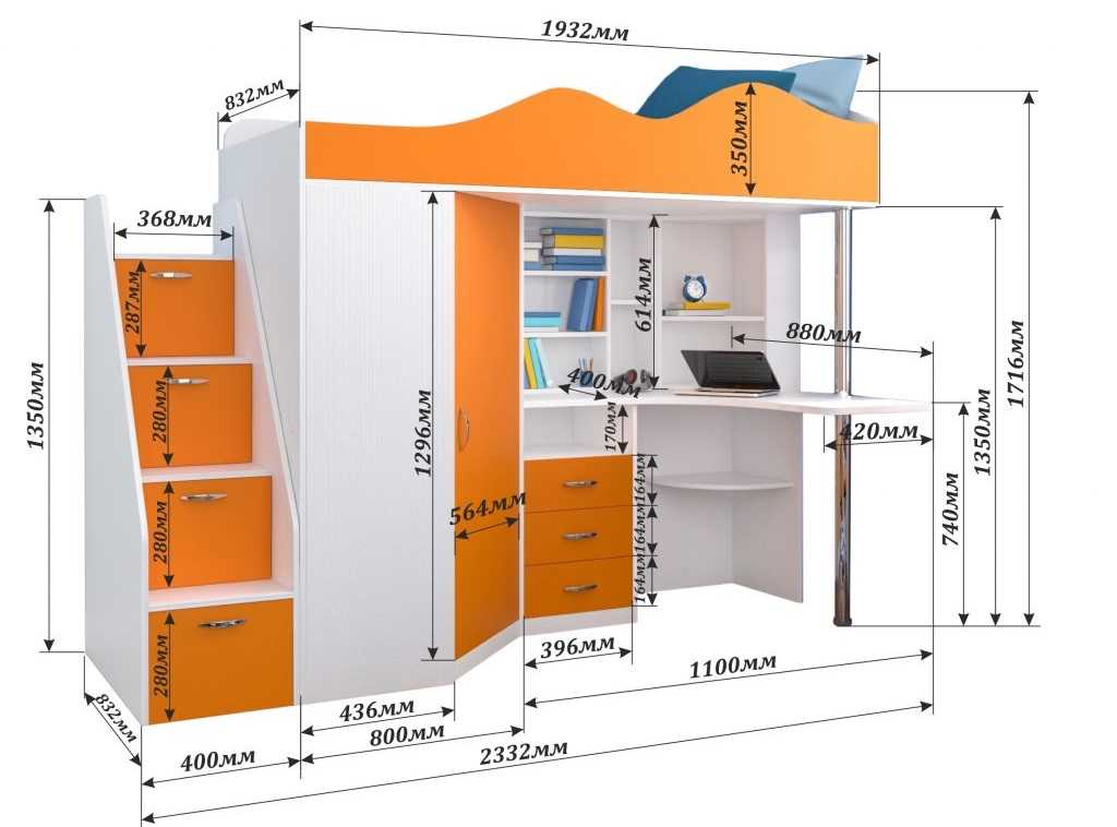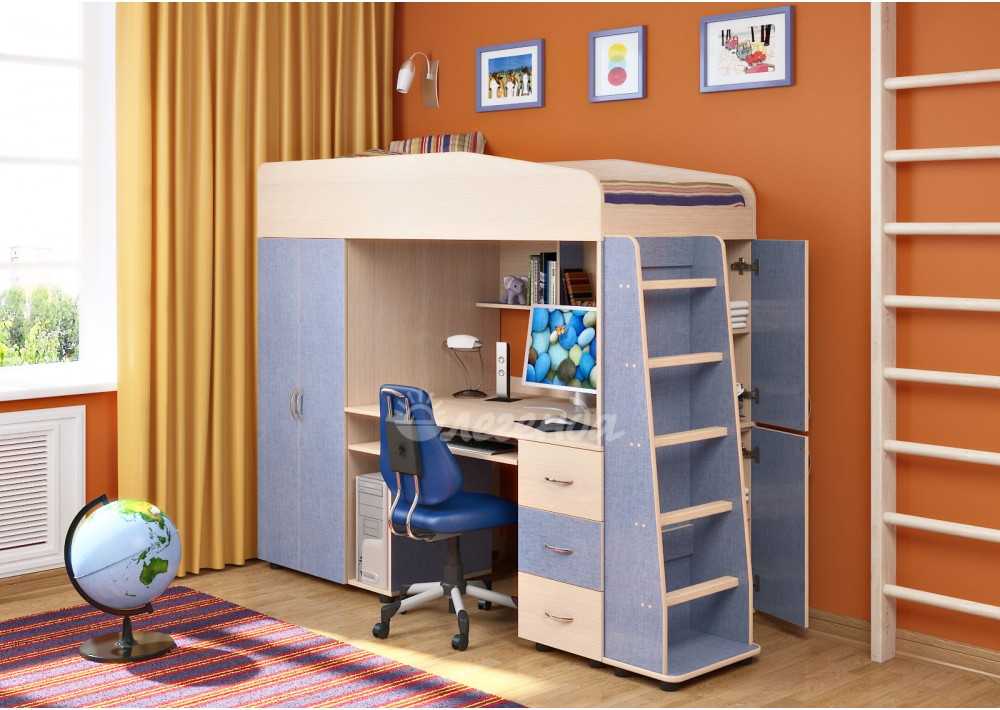 Самый распространенный вариант – вверху спальное место, внизу или , шкафы, полки. Такой вид мебели помогает ребенку организовать учебный процесс и упорядочить жизнь.