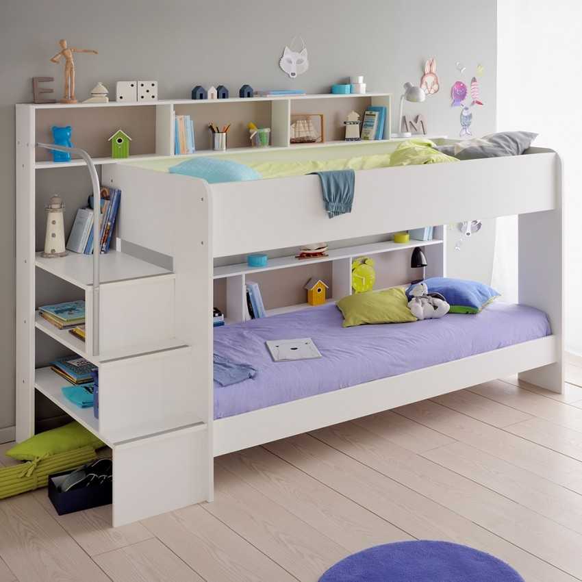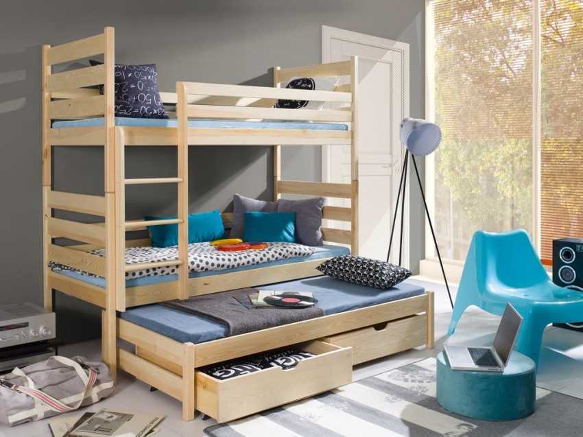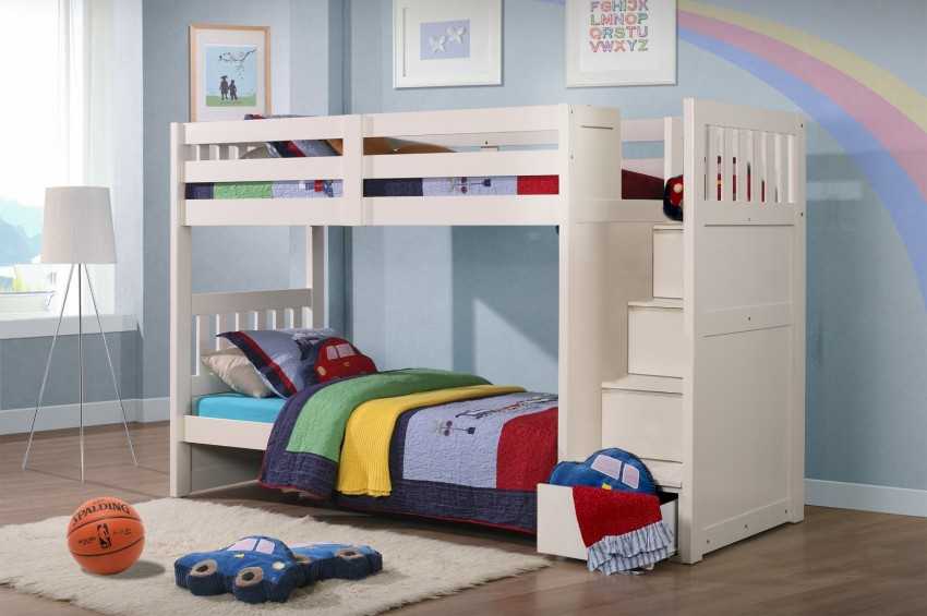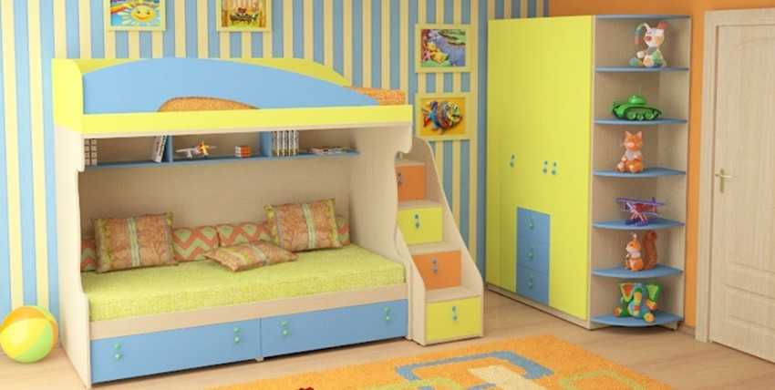 Если у вас двое детей, то производители могут предложить угловые модели, в которых спальные места размещены перпендикулярно друг другу.