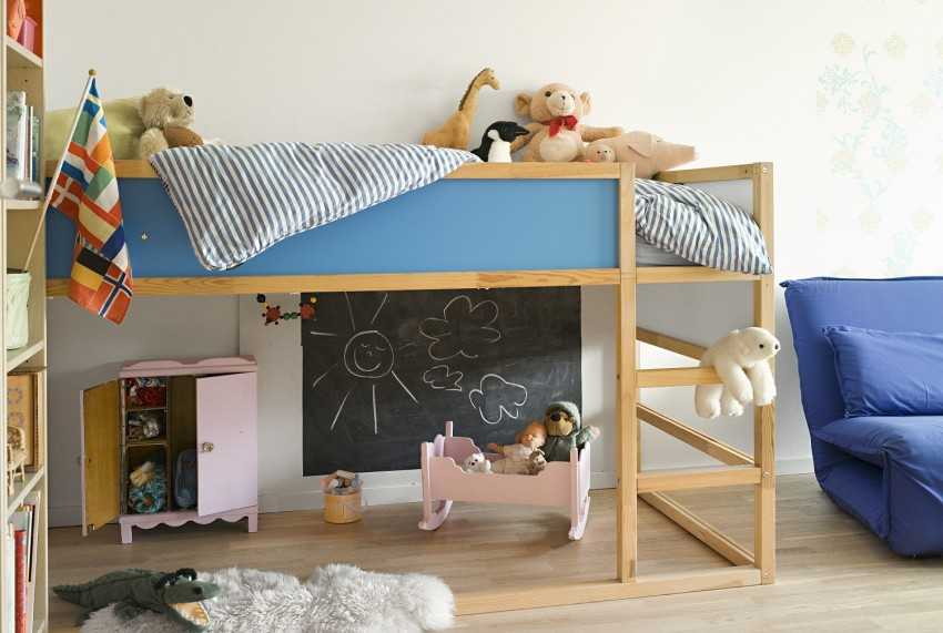 Можно разместить там кукольный домик или замок, поставить палатку. Иногда внизу просто находятся ящики для хранения вещей или игрушек.