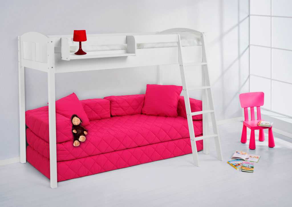 - С диваном. Снизу располагается раскладной диван, который подойдет как для сна, так и для чтения, просмотра телевизора, игр и других занятий;