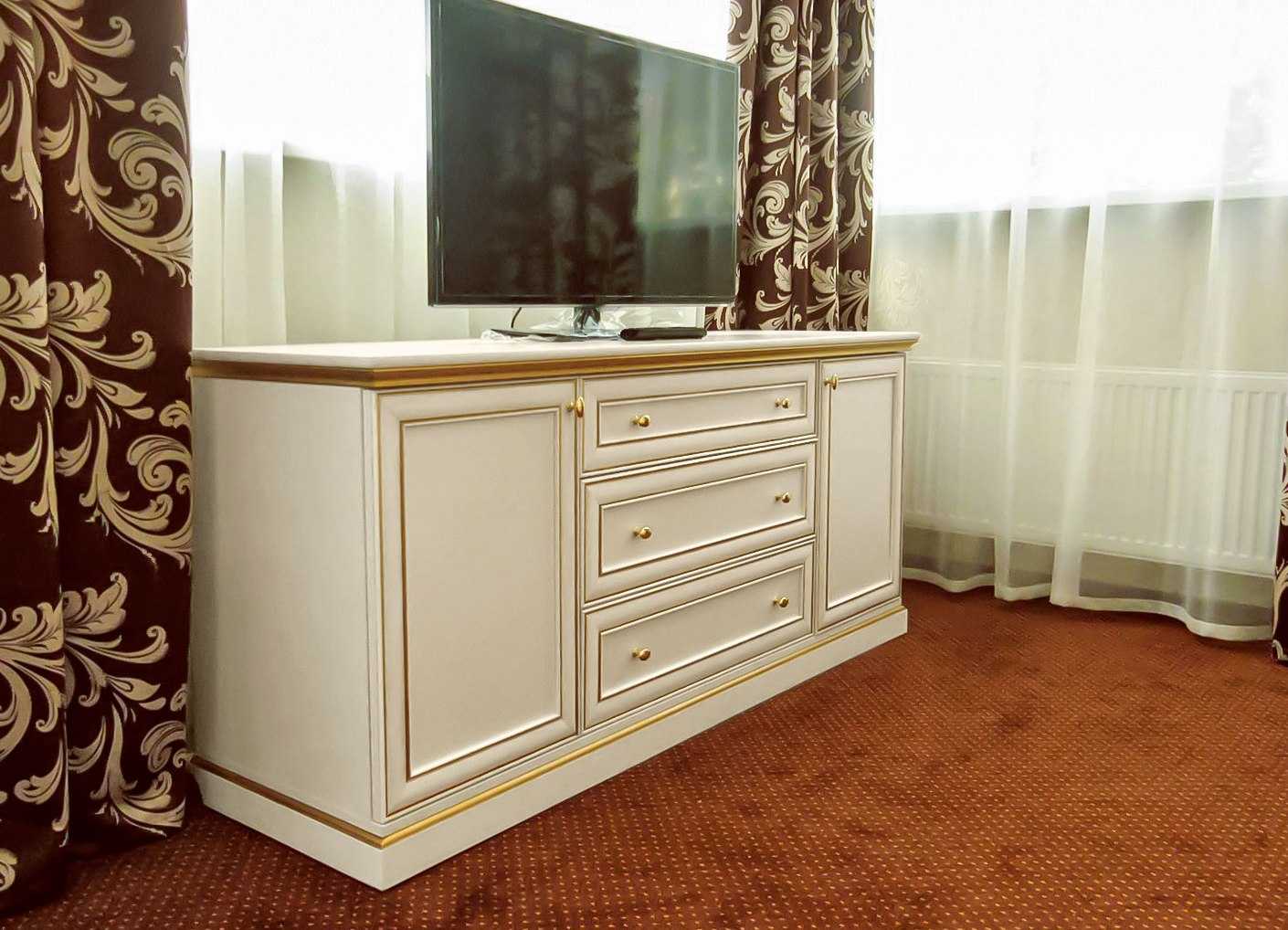 Угловые комоды под телевизор выпускаются в огромном ассортименте моделей, каждая из которых отличается не только функциональностью, размером, но и особенностями конструкции. Рассмотрим самые распространенные виды подобной мебели.