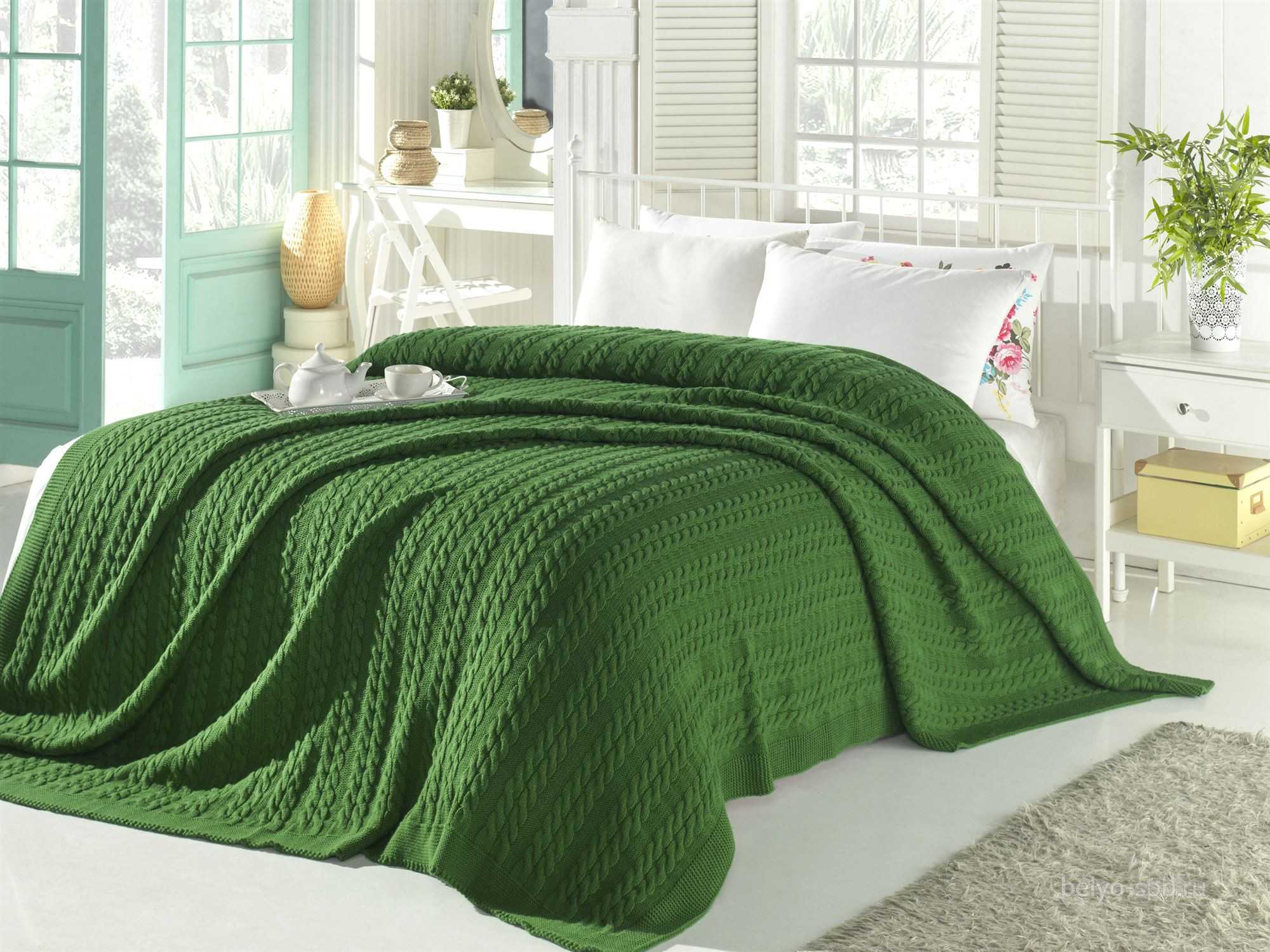 - Вязаное покрывало – отличное современное решение (особенно, покрывала крупной вязки). Минус – быстро истирается, деформируется, рвется.