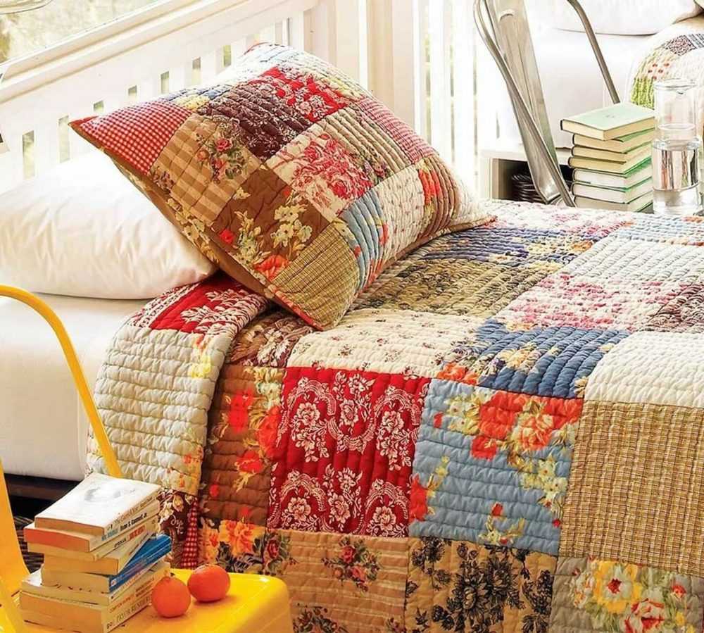 - В деревенской спальне будет кстати лоскутное покрывало.