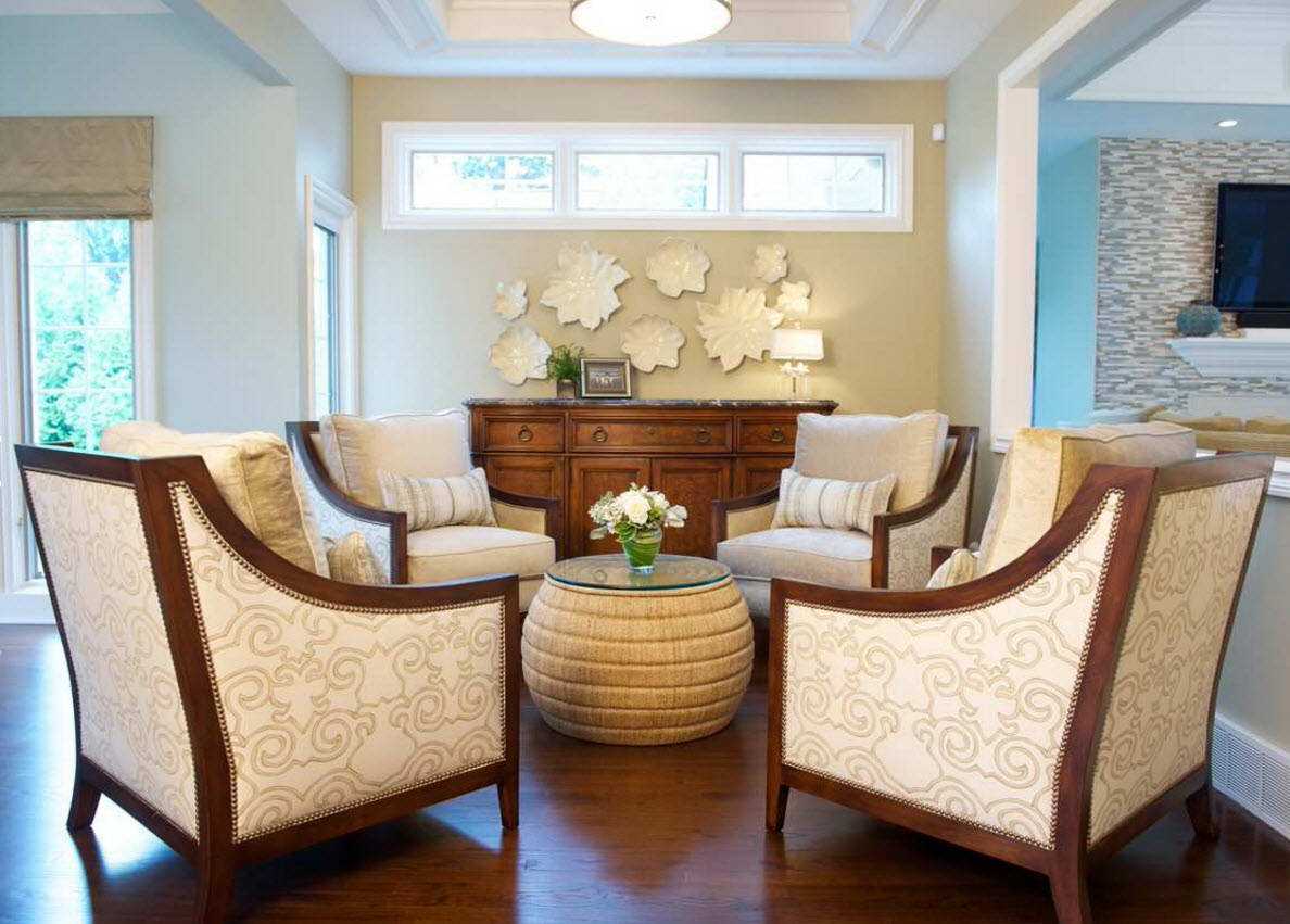 - Изделия будут таким же цветом, что и остальной интерьер, например: в бежевой комнате будут тарелки с оттенками слоновой кости.