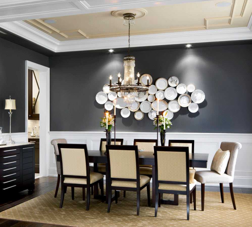 Декоративные тарелки на стене столовой – самый популярный вариант
