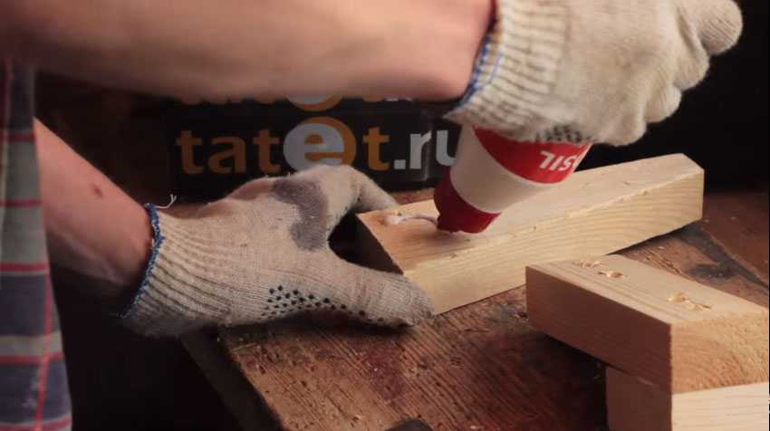 - На торцы заготовок ступенек носят столярный клей, соединяют и закрепляют до полного высыхания в струбцинах.