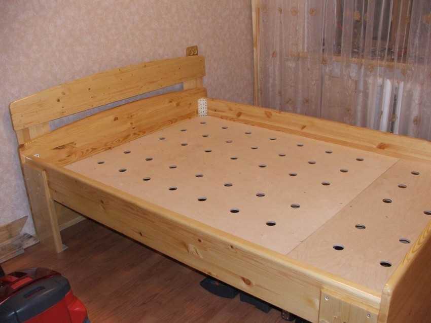 Уголки фиксируются к доскам саморезами в специальные отверстия. Но есть один нюанс – на элементах большое количество отверстий, неопытные мастера вкручивают саморезы в каждое. Такие действия вместо пользы приносят вред. Дело в том, то близкое расположение крепежей часто становится причиной появления трещин в доске, она полностью теряет свои первоначальные несущие характеристики и требует замены. Придется разбирать детали кровати, изготавливать новые и все начинать сначала. Как можно догадаться, потребуется много времени и финансовых средств.