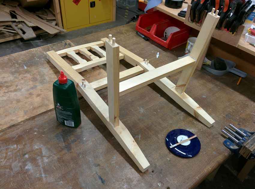 - Клиновидные подпорки, заранее подготовленные, прикрепите к передним ножкам.