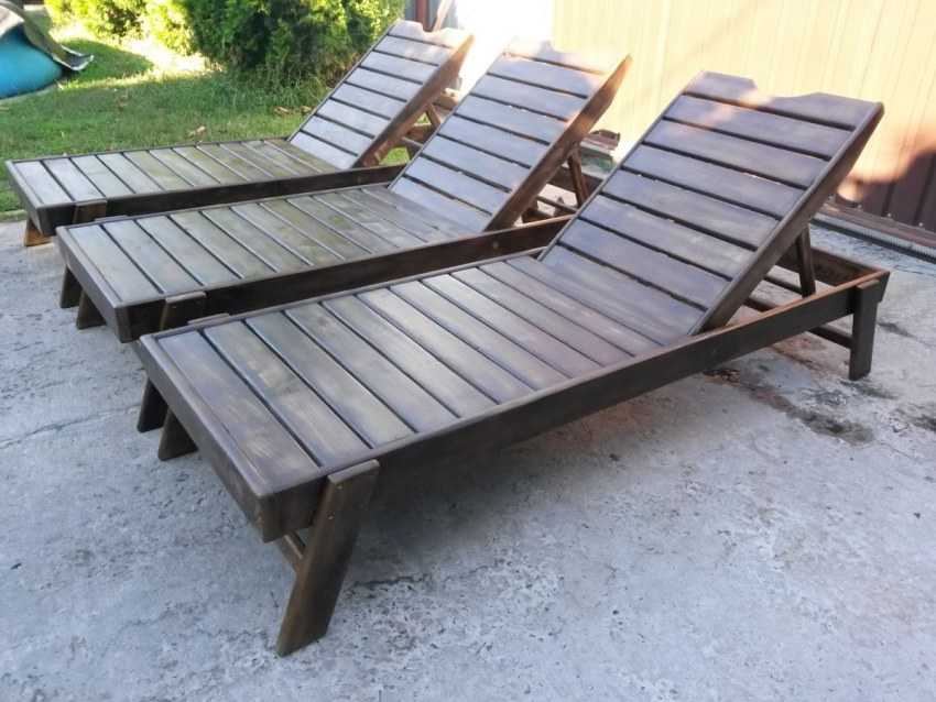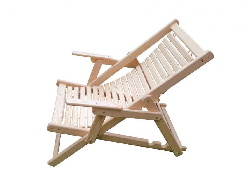 На фото деревянный шезлонг для дачи, сделанный своими руками