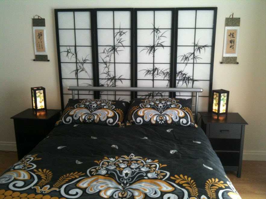 Ширмы в японском и китайском стилях делают максимально роскошными на вид. Соответствующим образом подбирают не только ткань, но и изображаемые сюжеты. Логичным шагом будет использование изображений с национальным колоритом. Пагоды и рисовые поля, иероглифы и загадочные горы, буддийские символы и восходящее солнце — вариантов масса. Помимо росписи, можно употреблять и тематическую аппликацию.
