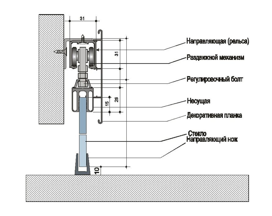 установить подвижные двери, необходимо знать, какими элементами комплектуется