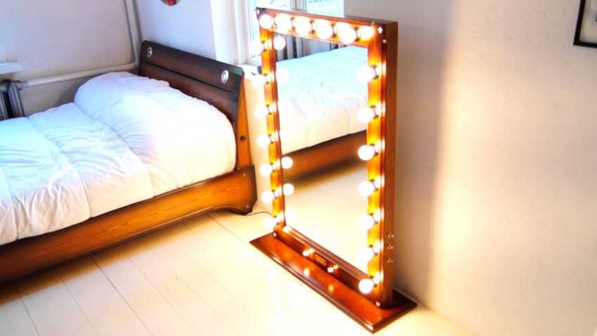 Гримерное зеркало с лампочками не слишком сложно сделать и своими руками. Для этого нам понадобятся: