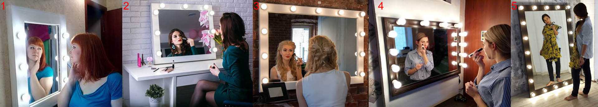 И, наконец, немаловажная область применения зеркал с подсветкой смотрящихся – гардеробные и примерочные. В таких добавляют и нижний свет, чтобы добиться бестеневого освещения в полный рост; ламп для этого понадобится от 20, поз. 5.