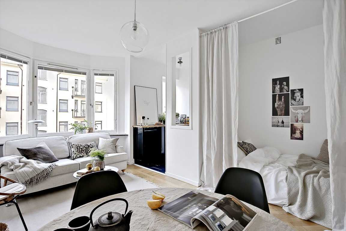 Одна из функций помещения обязана быть ведущей, и в зависимости от нее должно располагаться все важное и второстепенное. А ткань используется самая разная: от воздушного шифона, до плотного льна или габардина