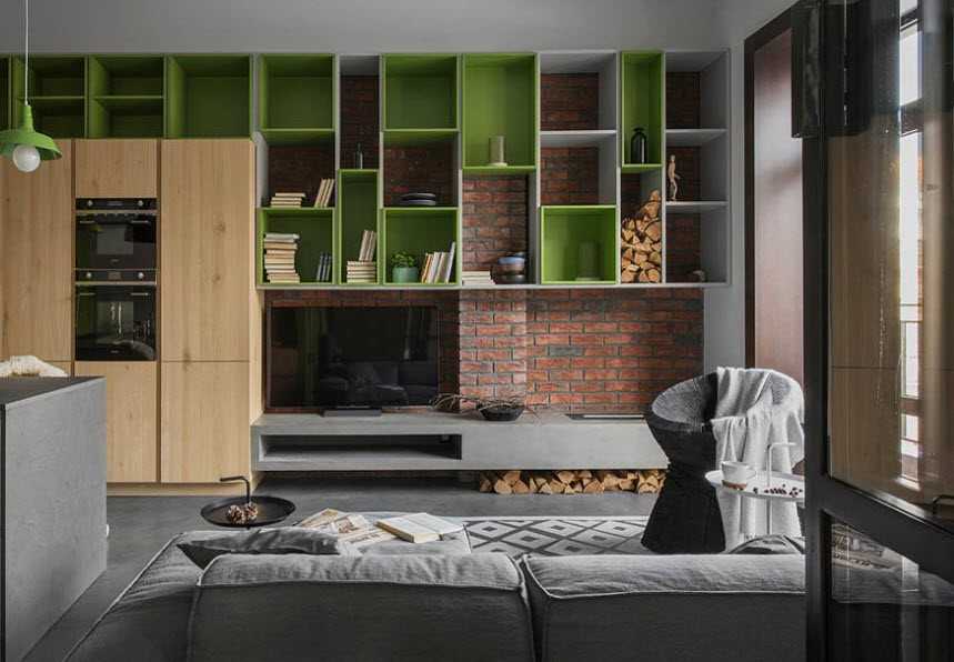 Цвет весны, надежды и начала новой жизни – он положительно влияет на общее самочувствие домочадцев. Наиболее выигрышно смотрится в сочетании с деревянной мебелью, комнатными растениями и водопадом – да, даже в маленькой гостиной можно устроить собственный водопад, во всяком случае его имитацию. Подобные идеи можно дополнять картинами с подсветкой и с изображением воды. Неплохо будет вписываться небольшой настольный светильник со встроенным мини фонтанчиком.