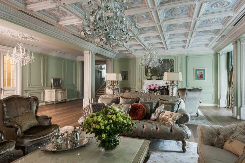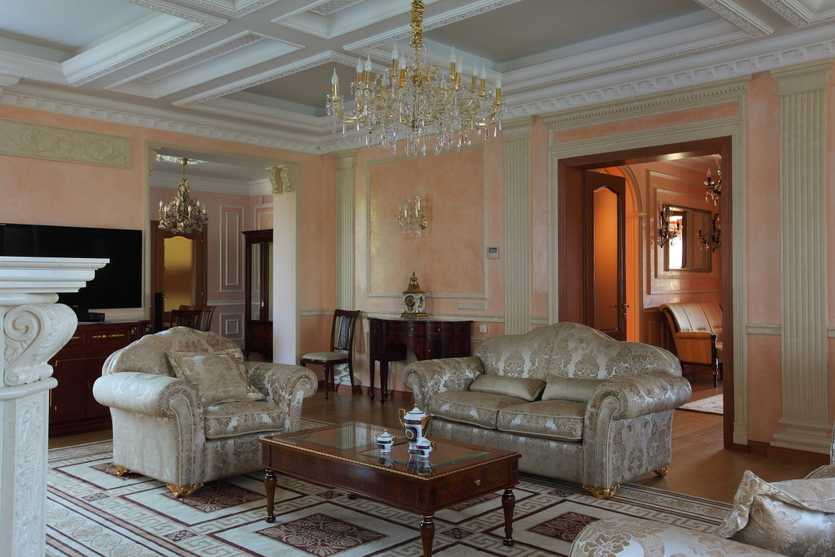 Потолок в гостинной классического стиля