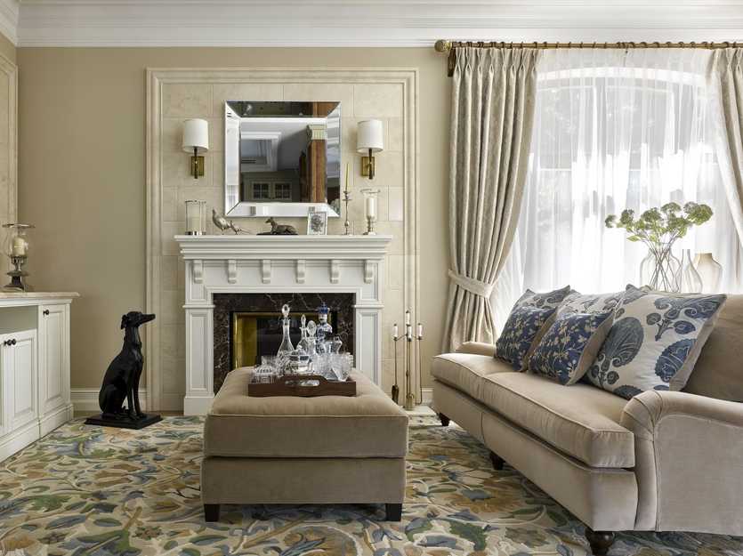 Классическая мебель в гостиной с камином