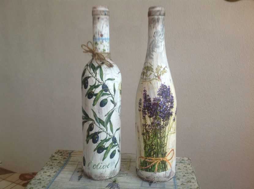 Декупаж на бутылках — оригинальный способ сделать интересные украшения для кухни