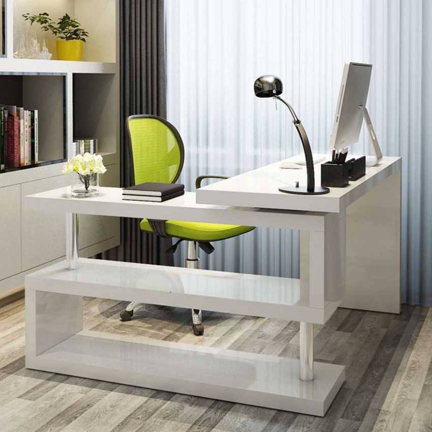 Угловой (г-образный) — расположить можно только в углу помещения. Отличается своей компактностью, благодаря дополнительным полочкам и ящикам, можно удобно расположить системный блок и всю необходимую канцелярию. Угловой компьютерный стол прекрасно подойдет для маленьких помещений, но могут возникнуть проблемы с освещением.