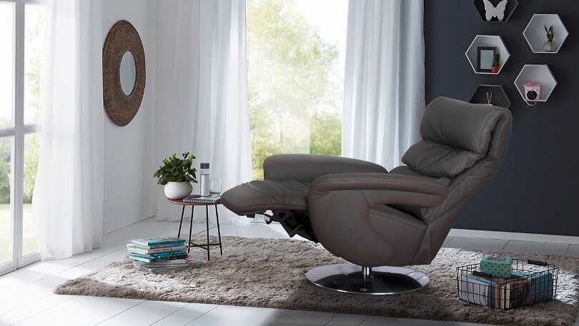 Главной особенностью здесь выступает реклайнер – система трансформации-встроенная автоматика, вы можете подстроить полностью под себя не только угол спинки, повороты, выдвижные подушки для ног.