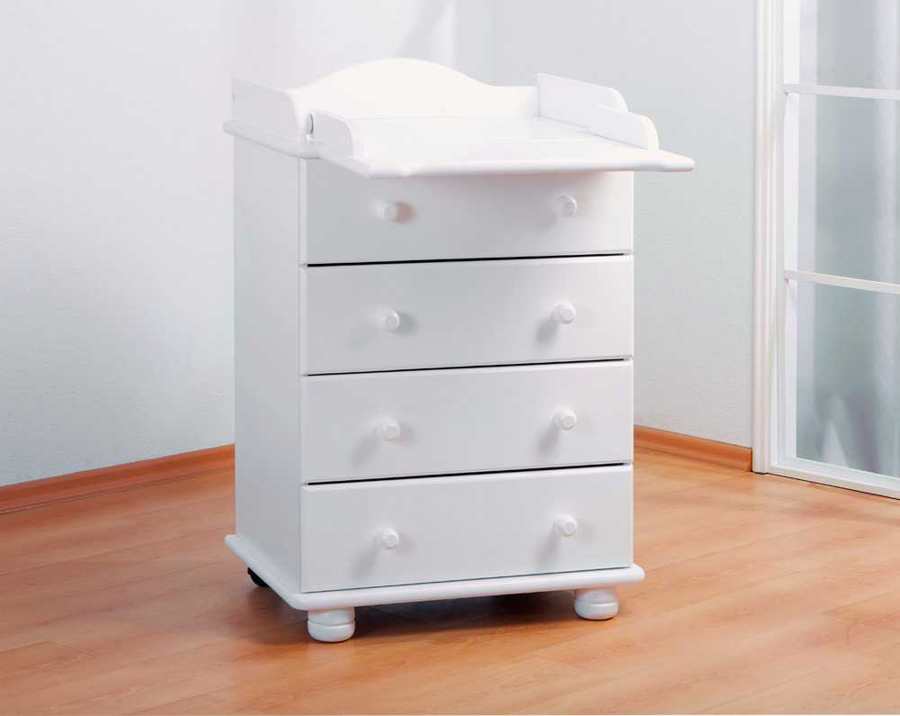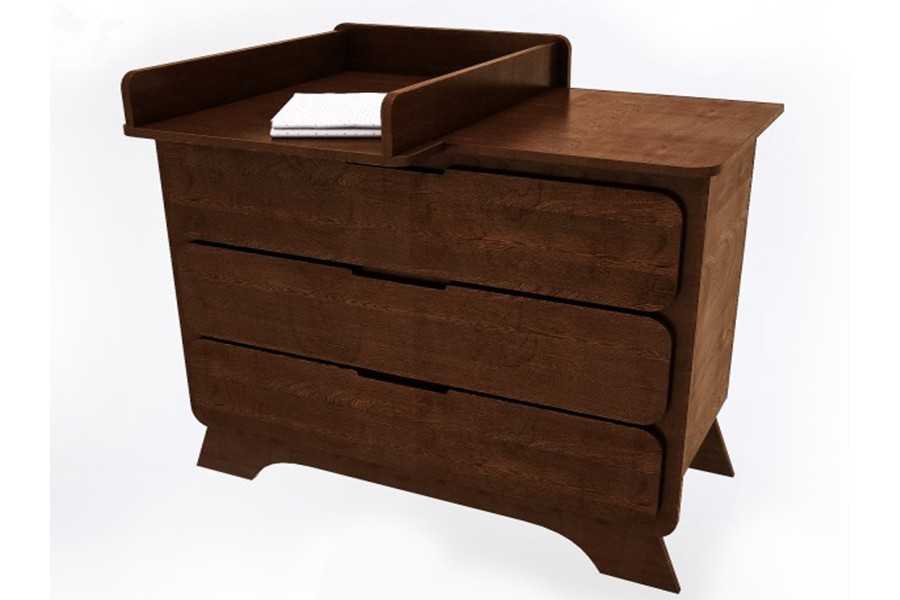 древесина — детские комоды с пеленальным столиком из древесины считаются оптимальным выбором. Это обусловлено тем, что данный материал являются экологически чистым, безопасным, надежным и гигиеничным. Конструкции могут быть окрашены в разные оттенки, причем наиболее востребованным считается цвет слоновая кость. К другим плюсам деревянных элементам относится стойкость к механическим воздействиям и хорошее поглощение различных звуков. Обладают они минусами, так как воздействие влаги или изменение температуры может привести к деформации конструкции, поэтому стандартное дальнейшее его применение будет затруднительным;