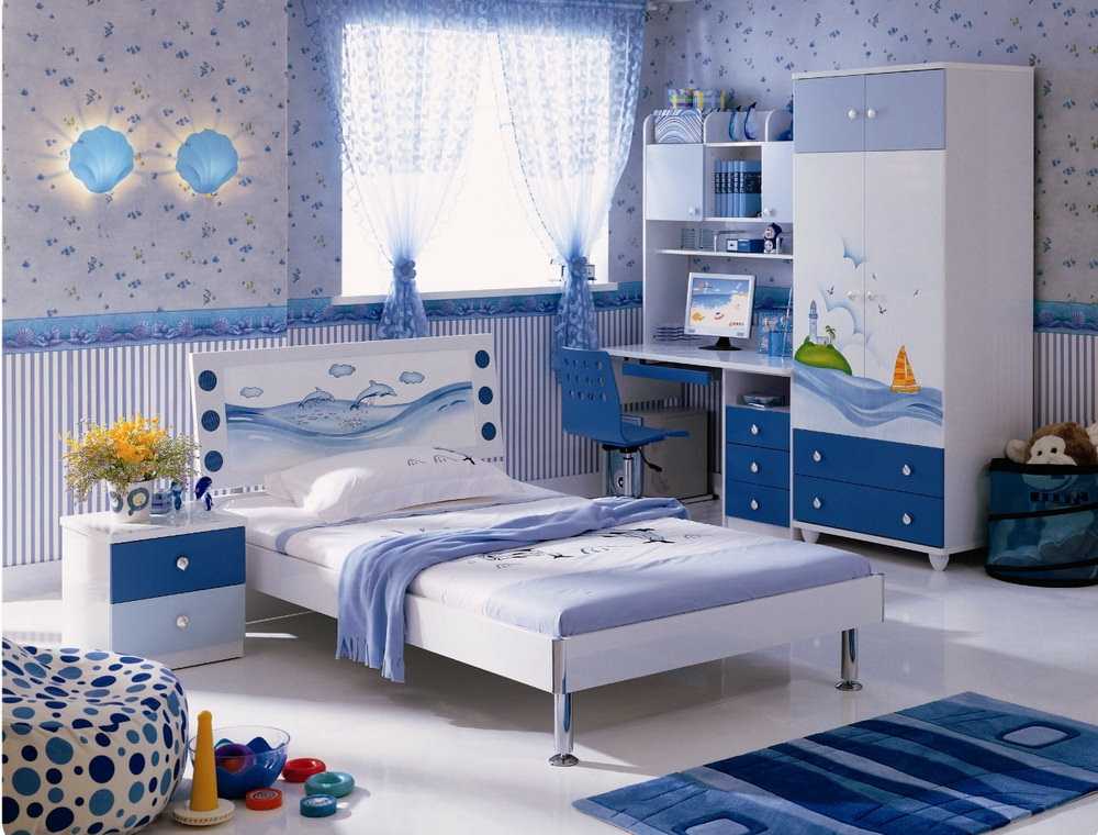 - считается, что голубой и синий цвета больше нравятся мальчикам, хотя многие девочки тоже любят эти оттенки, эти цвета успокаивают, но их необходимо сочетать с другими. Например, с белым, иначе синий будет способствовать ощущению напряжения.