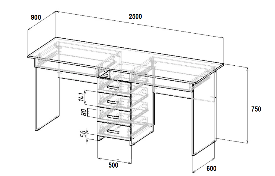 В семьях с двумя детками часто возникает проблема с местом в комнате для установки нескольких письменных столов. Чтобы сэкономить пространство, можно приобрести специальное изделие. Выглядит эта конструкция как обычный стол, при этом по размерам она немного больше. Увеличенная длина позволяет двоим детям одновременно делать уроки, заниматься рисованием, лепкой и другим творчеством, не мешая друг другу. Наличие полок, выдвижных ящиков, в которых можно хранить канцелярию и книги, также будет плюсом. Размеры письменного стола для двоих могут быть следующими: