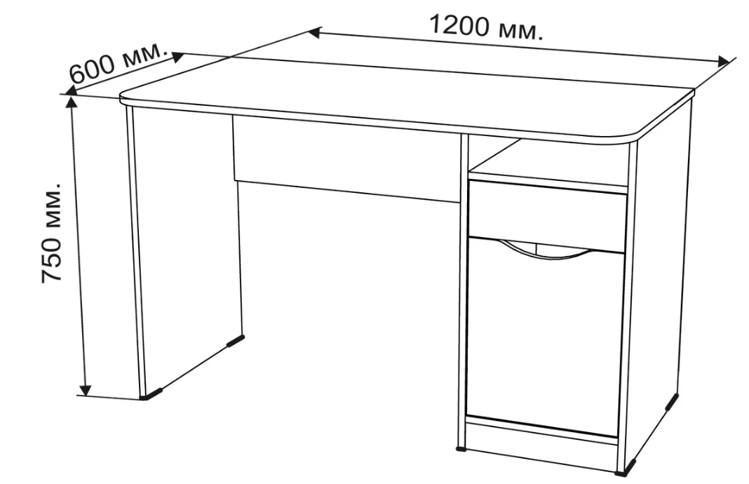 Прямой письменный стол — наиболее распространенная вариация мебели. Самый важный параметр — высота. За основу расчетов берется рост человека. При среднем показателе взрослого мужчины в 175 см и женщины в 162 см высота мебели должна составлять приблизительно 75 см. Это усредненный стандартный размер, который используется при изготовлении прямого письменного стола. Габариты этой модели для взрослых можно свести в таблицу.