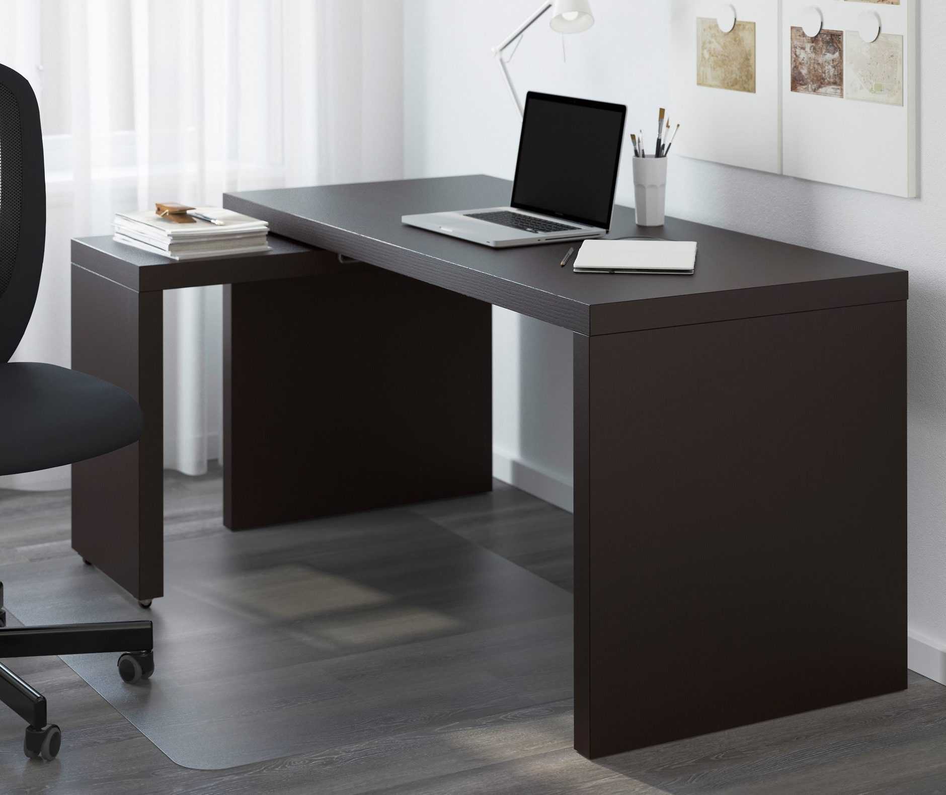 Ширина и глубина выбираются с учетом функционала стола. Если планируется использовать его только как письменный, достаточно будет небольших размеров. При работе с оргтехникой стоит отдать предпочтение широкой столешнице.