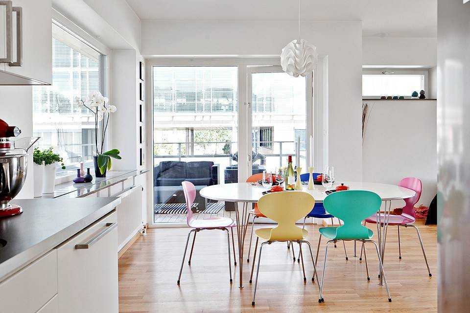 Современный интерьер отличаются сочетанием простоты и оригинального дизайна. Необычный эффект можно получить, используя разные модели стульев и создавая их набор по собственной идее. Сочетать те же дизайны, но в нескольких других цветах, а также мебель совершенно другой формы – те, которые на первый взгляд не совпадают.