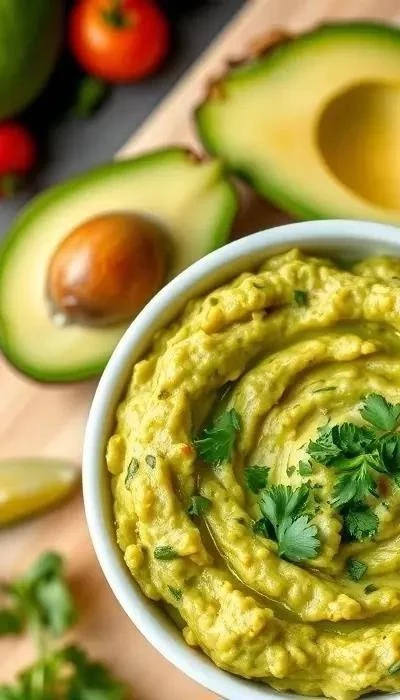 Разомните спелый авокадо. Добавьте красный лук, помидор, кинзу, сок лайма, соль, чили (по желанию). Перемешайте. Прекрасен с начос.