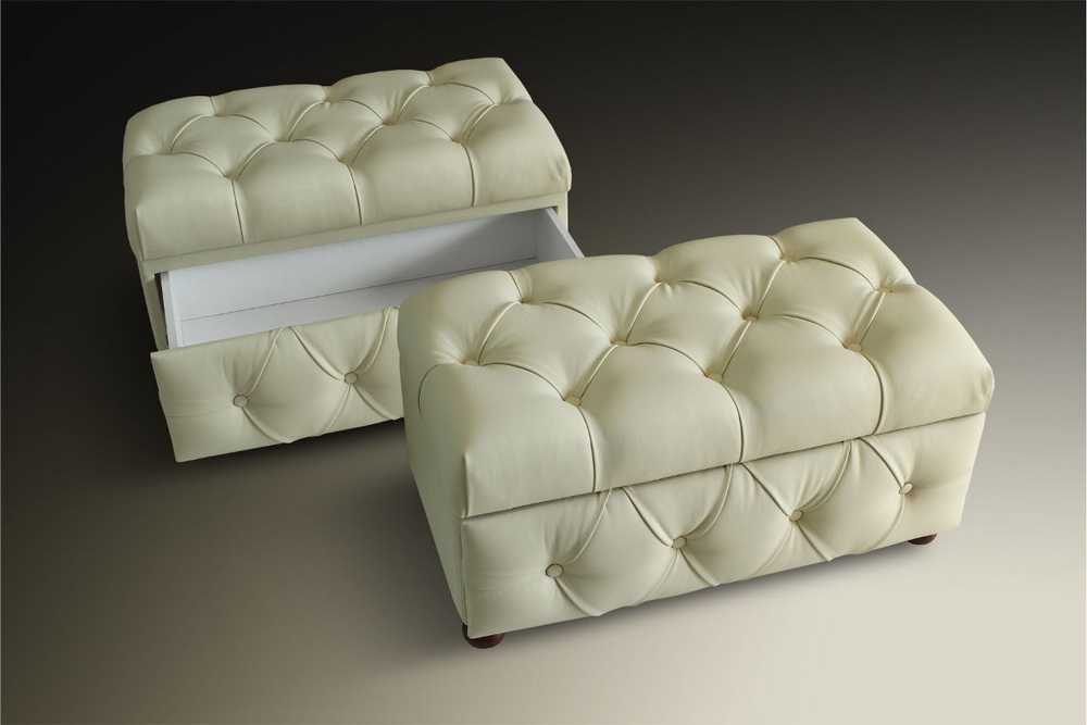 - пуфы баннкетки — которые используются для сидения на них. Их высота составляет в среднем 35–40 см. У них может быть разнообразная конструкция, форма, внешняя отделка;