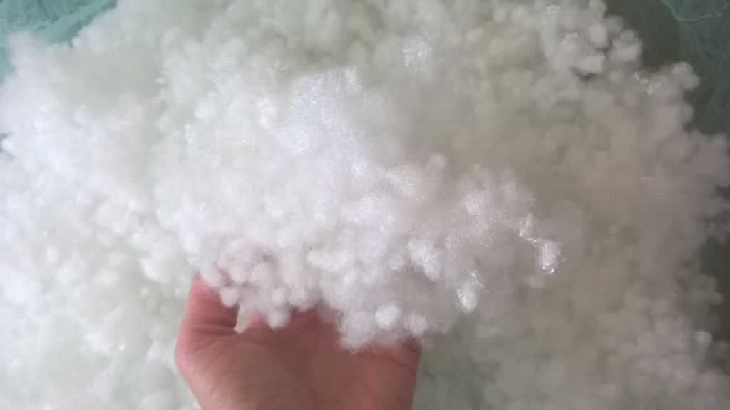 - Холлофайбер — отдельно не встречается, комбинируется с другими типами наполнителя. В комплексе с пенополистиролом обеспечивает максимальный комфорт. Из других достоинств — не вызывает аллергии, не впитывает запахи, водоустойчив.