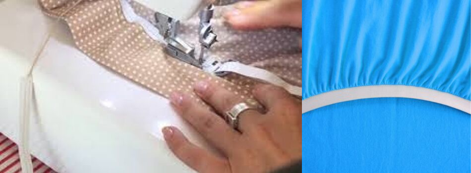 Ее нужно нанизать на булавку, продеть внутрь кулиски и осторожно протянуть по всему периметру. После этого концы резинки крепко сшиваем между собой, а края простыни обрабатываем оверлоком