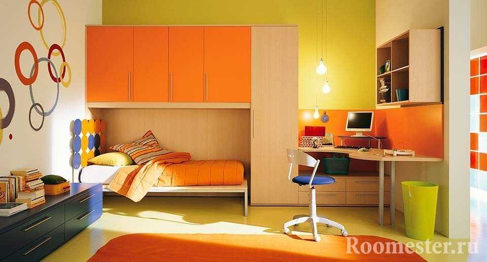Желто-оранжевый цвет прекрасно подойдет для детской комнаты. Оба оттенка будут способствовать развитию ребенка и поддержат позитивный настрой.