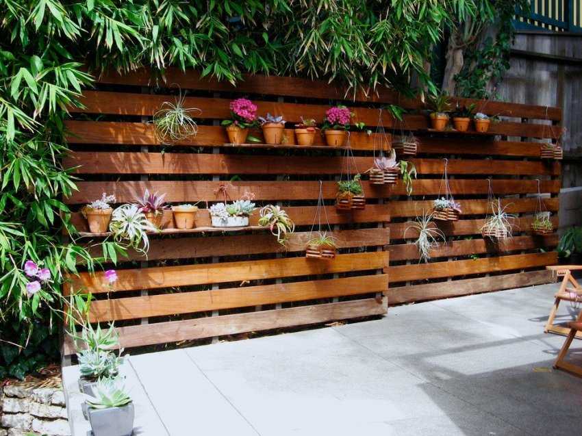 - некоторые дизайнеры создают из поддонов необыкновенные, красивые и уникальные конструкции, прекрасно вписывающееся практически в любой экстерьер, а фото готовых результатов находятся ниже, поэтому многие владельцы частных участков покупают такие конструкции для оформления территории;