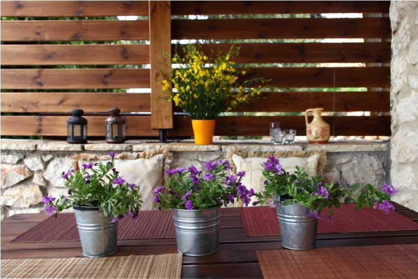 Территория будет выглядеть привлекательно, если дополнить забор, изготовленной своими руками, мебелью из поддонов, фото таких участков иногда выглядят грубовато, поэтому желательно придерживаться старинного стиля в оформлении. Допускается использование и других вариантов дизайна. Но в таких случаях придется украсить забор декоративными элементами, например, росписью или ящиками с живыми цветами.