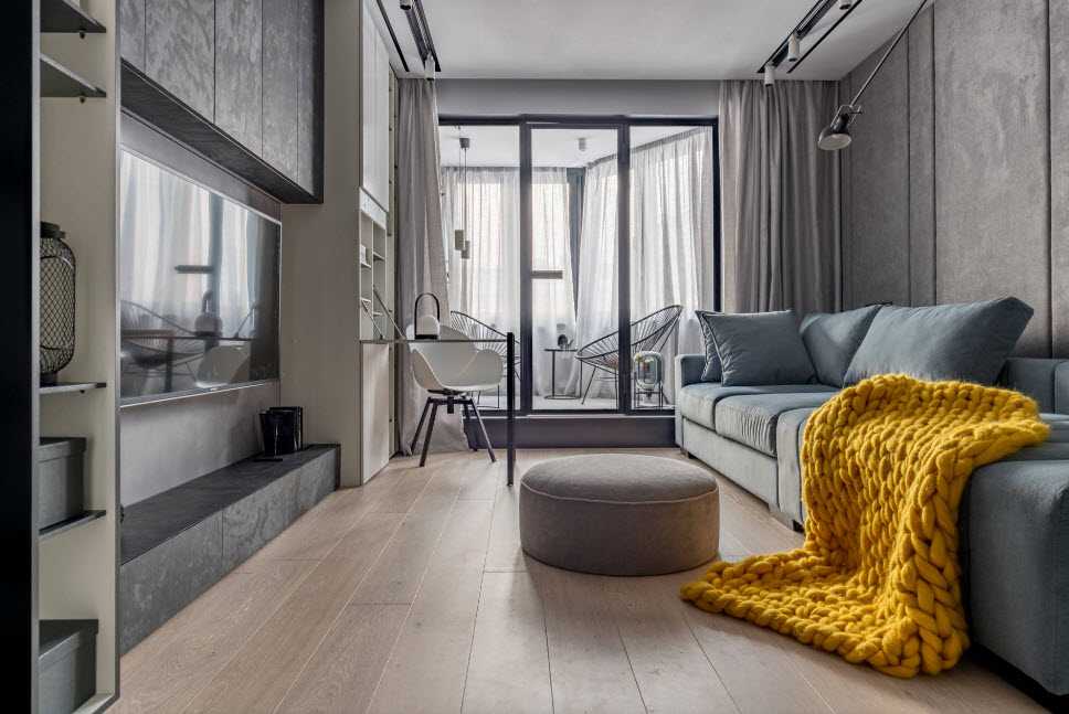 Важно лишь убедиться, что все цветные элементы сочетаются между собой. Сами же серые поверхности можно смело разбавлять цветными полосами, узорами и орнаментами