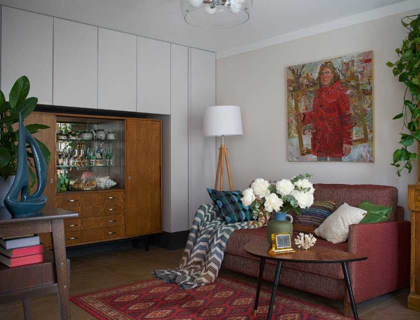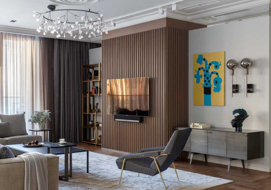 При желании его можно вписать в современную стилистику, но важно соблюдать умеренность с добавлением в интерьер аксессуаров. Дизайн гостиной должен показывать глубину вашего внутреннего мира